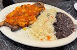 Sauteed shrimp with onions, peppers, mushrooms and Guajillo seasoned.